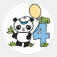 Quatrième anniversaire mignon panda garçon avec casquette bleu, tenant des feuilles de bambou et un ballon jaune, le texte dit "I'm 4" avec grand bleu 4.