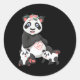 Sticker Rond Panda Mama Ours Deux Cubs Floral Love