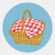 Image stylisée d'un panier de pique-nique. Imaginez la délicieuse nourriture contenue dans cette mignonne corbeille de pique-nique avec couverture rouge et blanc en damier.
