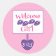 Cet auto-collant de fête de petite fille douce présente un joli panneau accueillant son arrivée dans le monde. Ajoutez une année à coeur pour une touche spéciale.