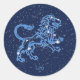 Stickers arborant le symbole de Léo en bleu argenté doux, recouvert des étoiles de la constellation, contre un arrière - plan étoilé du bleu profond de minuit au noir.
