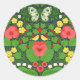 Sticker Rond Pansies rouges, oiseaux et papillons