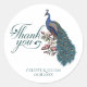 Ces autocollants Merci Paon sarcelle chic présentent un paon bleu et sarcelle dessiné à la main perché sur des branches de magnolia en fleurs à l'encre noire et le titre "Merci" en écriture sarcelle élégante. Personnalisez avec les noms des mariés et la date en cliquant sur "Personnaliser ce modèle" sur la page du produit.