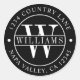 COULEUR DE FOND MODIFIABLE. Autocollant d'adresse de retour rond monogrammé élégant noir et blanc.