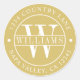 COULEUR DE FOND CHANGEABLE. Autocollant rond élégant monogrammé or et blanc pour adresse de retour.