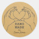 Sticker Rond Papier Kraft Fait Main Cœur Mains Artisanat Person