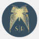 Sticker Rond Papillon Art déco Monogramme Or bleu