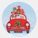 Sticker Rond Papillon Chien En Voiture Avec Le Père Noël