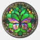 Sticker Rond Papillon dans un design de vitrail de style Tiffan