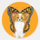 Ce chien Papillon porte un déguisement - de grandes ailes orange, jaune, noir et blanc et un ensemble de petites antennes - c'est un papillon Monarque !