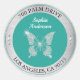Sticker Rond Papillon Diamant Argent Adresse de Retour Turquois