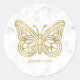 Sticker Rond Papillon géométrique en marbre blanc et or