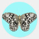 Sticker Rond Papillon noir et blanc, arrière - plan turquoise