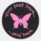 Papillon ulysse rose. Icône vectorielle avec couleur personnalisable. Couleur arrière - plan personnalisée. Deux champs de texte personnalisés sur cercle.