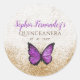 Sticker Rond Papillon Violet Doré Rustique Vintage