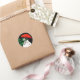 Snowman avec un autocollant parapluie rouge a une carte de voeux et un aimant correspondants appelé RED UMBRELLA.