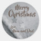 Autocollant noir et blanc avec une photo au-dessus du papier parchemin décoratif et des étiquettes-cadeaux étoilées, ornements sur un arrière - plan marbré. Autocollant personnalisé - Un moyen amusant et facile d'ajouter un peu de personnalité supplémentaire à vos enveloppes, enveloppements cadeaux et plus encore. Le texte est entièrement personnalisable - changez le texte ou supprimez-le complètement. Vous pouvez même changer la police.