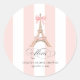 Célébrez l'amour avec une touche de charme parisien ! Cet autocollant romantique met en scène une délicate Tour Eiffel dessinée à la main et nouée de rubans rose tendre, sur un fond rayé rose et blanc impeccable. L'élégante écriture qui indique “Merci” ajoute la touche parfaite d'élégance française pour remercier vos invités à votre fête de douche de mariée ! Utilisez-le pour habiller des enveloppes, sceller des cadeaux de fête, ou ajouter une touche stylée à votre décoration de douche de mariée. Un choix magnifique pour des célébrations sur le thème de Paris, des douches de mariée chic, ou toute réunion qui demande un peu de je-ne-sais-quoi.