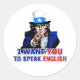 C'est l'Amérique, nous parlons anglais ici. Oncle Sam veut que nous parlions tous anglais.