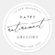 Créez une fête d'adieu personnalisée pour favoriser les étiquettes avec cette conception minimaliste de Sticker rond de la fête de retraite. Cet autocollant de faveur en noir et blanc est idéal pour les cadeaux ou les décors lors d'un apéritif ou d'un dîner d'adieu pour un employé ou un membre du personnel. Doté d'un design classique avec police de script, cet autocollant de parti moderne est entièrement personnalisable pour que vous puissiez l'adapter à votre marque et à l'esthétique de l'événement.
