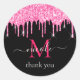 Monogramme Noir et Métallic clair néon rose chaud Dripping scintillant Faux Parties scintillant personnalisé merci autocollants. ce modèle vous permet d'ajouter rapidement votre nom et votre texte avec facilité en utilisant l'outil de personnalisation de zazzle. CONSEIL : afin de conserver les extensions ~, laissez le et entourant le nom, et remplacez simplement l'intérieur par votre propre nom. si vous les supprimez accidentellement, vous pouvez copier et coller à partir d'ici.