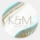 Cet ensemble design, avec son motif abstrait d'ondulations fluides et de veines d'or scintillant, évoque des formations rocheuses captivantes, des dunes de sable coulantes et des vagues océaniques douces. Les couleurs saisissantes de la mer et du sable de cet ensemble viennent compléter l'attrait. L'autocollant de faveur montré ici a un arrière - plan abstrait avec modèle pour ajouter facilement vos initiales et la date de mariage. Recherchez ID903 pour voir d'autres choix de couleurs et coordonner des pièces pour cette collection de mariages unique.