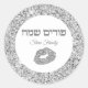 Stickers Hébreux Happy Purim Parties scintillant Argent Baisers à lèvres Hébreu Happy