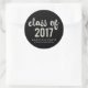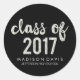 Célébrez votre diplôme d'études secondaires ou collégiales avec des autocollants sur mesure de classe 2017 ! Les autocollants de graduation présentent "Classe de 2017" dans un style de police de parties scintillant argent, arrière - plan noir, et des espaces réservés pour votre nom et votre école.