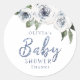 Faux scintillant bleu parties scintillant "baby shower" avec floral bleu et blanc poussiéreux, élégant et élégant, grand baby shower customisé pour autocollants.
