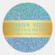 Sticker Rond Parties scintillant bleue Merci de badge or
