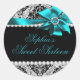 Sticker Rond Parties scintillant Damas et bijoux Turquoise Bow
