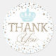 Parties scintillant d'argent avec éclaboussures bleues avec un baby shower prince royal de couronne merci étiquette cadeau.
