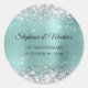 Sticker Rond Parties scintillant d'argent pâle Turquoise Mariag