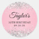 Sticker Rond Parties scintillant d'argent rose 50e anniversaire