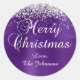 Calligraphie fantaisie Joy stickers enveloppe de Noël pour vos cartes de voeux de vacances. Customisez la taille ou le style de police de votre nom de famille selon vos besoins. La parties scintillant brillante en argent et la feuille métallique de style royal violet brossé sont des éléments d'art numérique qui s'impriment comme une photo.