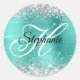 Sticker Rond Parties scintillant d'argent Turquoise Foil Fancy