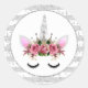 Sticker Rond Parties scintillant d'argent Unicorn Princesse