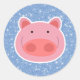Illustration de la tête d'un cochon mignon au-dessus d'un arrière - plan de parties scintillant bleu