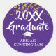 Script de brosse manuscrite moderne 20XX GRADUATE graduation partie favoriser autocollants ou enveloppes avec confettis de parties scintillant d'or et mortier blanc contre un arrière - plan mauve modifiable et personnalisée avec le nom de votre diplômé. MODIFICATIONS : Modifiez la couleur violette de l'arrière - plan et/ou modifiez le style, la taille, la couleur ou le placement de la police de texte en cliquant sur PERSONNALISER PLUS LOIN. Contactez le concepteur via Zazzle Conversation ou makeitaboutyoustore@gmail.com si vous souhaitez modifier ce design, sur un autre produit ou pour coordonner des éléments.