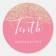 Sticker Rond Parties scintillant d'or Confetti rose 10e anniver