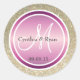 Sticker Rond Parties scintillant d'or et Mariage mauve métalliq