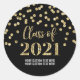 Classe de nom personnalisé de 2021 autocollants de graduation en noir et motif de confetti or.