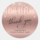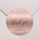 Chic 70e anniversaire autocollant pour vos cartes de remerciement et les faveurs de fête avec "Merci" dans un élégant script de calligraphie et rose fausse parties scintillant or sur un arrière - plan rose de faux feuille d'or.