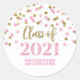 Classe de nom personnalisé de 2021 autocollants de graduation avec motif de confetti or et rose.
