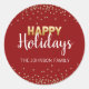 Joli script de calligraphie personnalisé Noël HAPPY Holidays stickers à ajouter à vos enveloppes, cartes de voeux et/ou cadeaux. Arrière - plan rouge (peut être changé en n'importe quelle couleur) couleur avec faux confettis parties scintillant or. Parfait pour toutes les occasions de vacances. Étiquettes modèles modifiables.