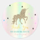 Sticker Rond Parties scintillant d'or Unicorne, Étoiles, Irides