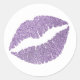 Baiser, lèvres ou rouge à lèvres violet de l'orchidée Amethyst parties scintillant imprimé contre un arrière - plan blanc. Vous pouvez vous customiser pour créer votre propre RSVP ou Sticker Merci pour un événement spécial. Les autocollants seront faux parties scintillant. Le design des lèvres est réalisé à l'aide d'une photo de parties scintillant.