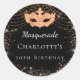 Sticker Rond Parties scintillant en or noir mascarade fête d'an