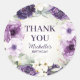 Sticker Rond Parties scintillant florale blanc pourpre Merci d'