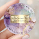 Sticker rond Lilac Parties scintillant Aquarelle Faux Gold Foil Merci Classic. Cette conception comprend une police de style script de signature classique et un bel arrière - plan moderne lilas scintillant. Parfait pour un salon de beauté, coiffeur, maquilleur ou cosmétologue.